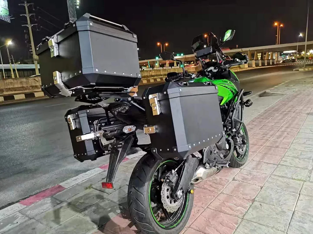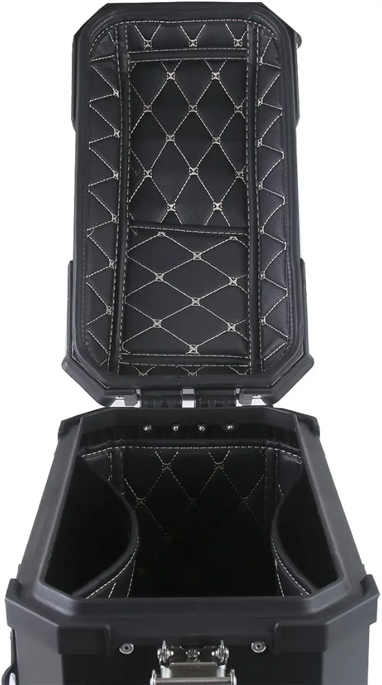 ★ صندوق تخزين علوي للدراجة النارية مصنوع من خليط معدني من الألومنيوم، وهو قوي جدًا وآمن كمسند ظهر. يحمي غطاء الحواف حواف وزوايا الحذاء.