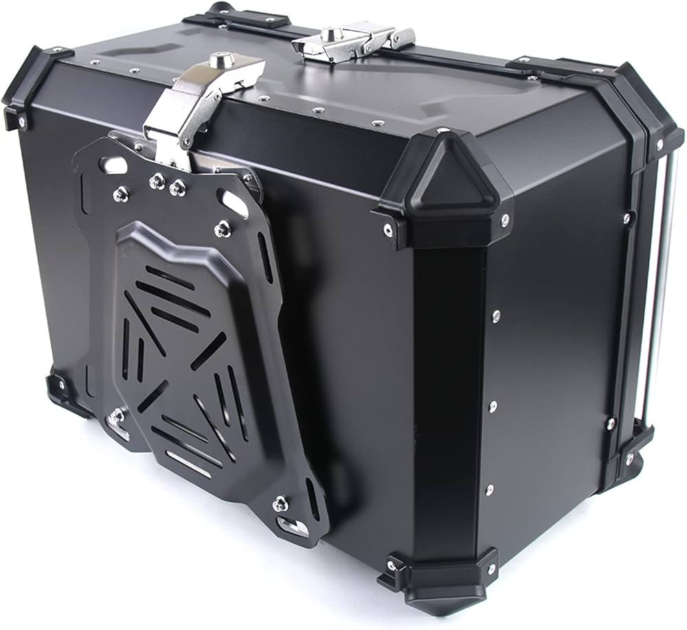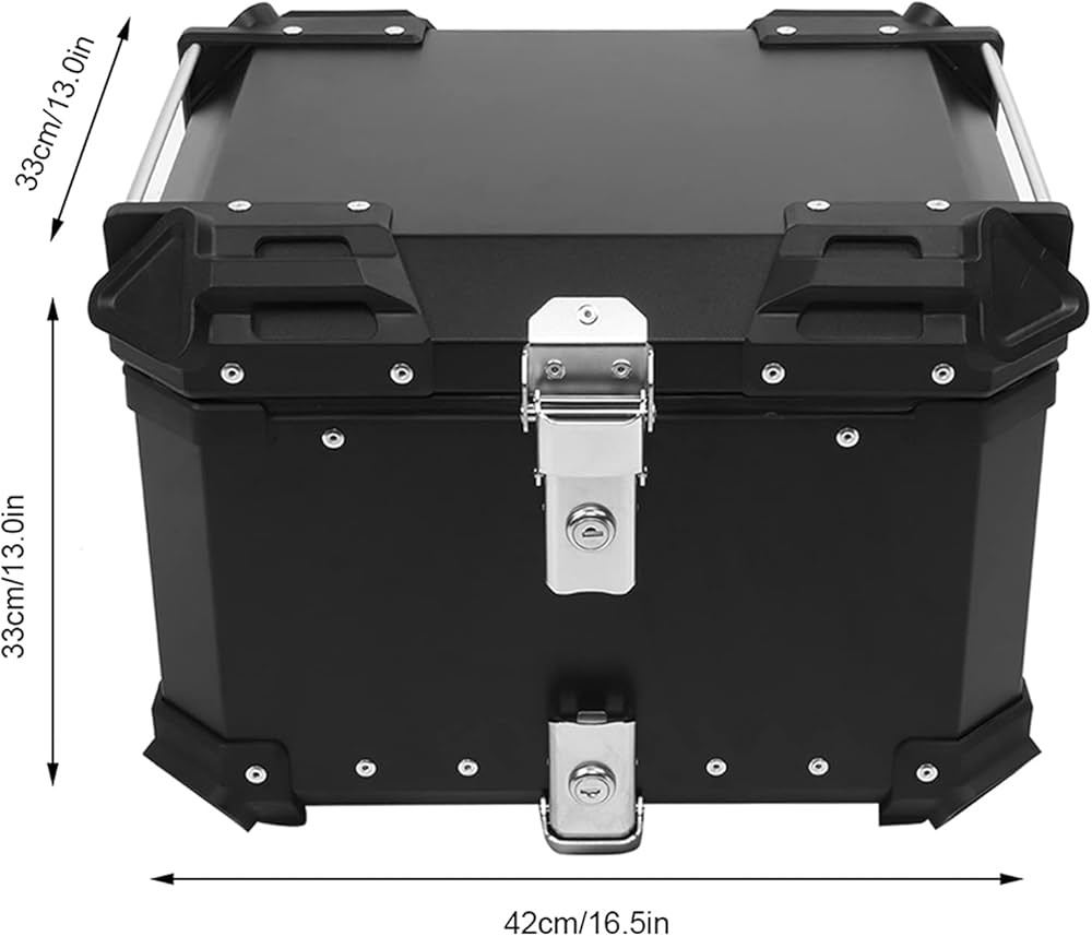 ★ صندوق تخزين علوي للدراجة النارية قابل للتكيف - يمكن استخدامه على جميع الدراجات النارية المحملة بمسند خلفي للحمولة. حجم صندوق الدراجة النارية تقريبًا: 52*26*40 سم، 13 كغم