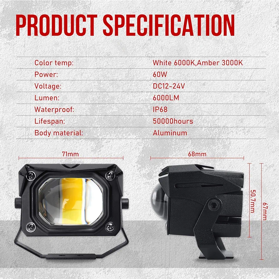【مصباح ضباب LED مزدوج اللون للدراجات النارية】