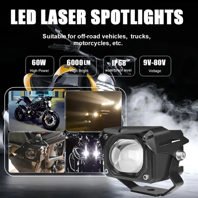 【فوانيس أمامية للموتوسيكلات والسيارات مع عدسة جهاز عرض】رقائق LED عالية ✅الجودة 60 وات تنبعث منها ضوء أبيض ساطع للغاية 6000 كلفن وأصفر 3000 كلفن، ✅تصميم عدسة جهاز العرض يجعل نمط ✅الضوء أكثر تركيزًا للإضاءة الموضعية، رؤية واضحة.