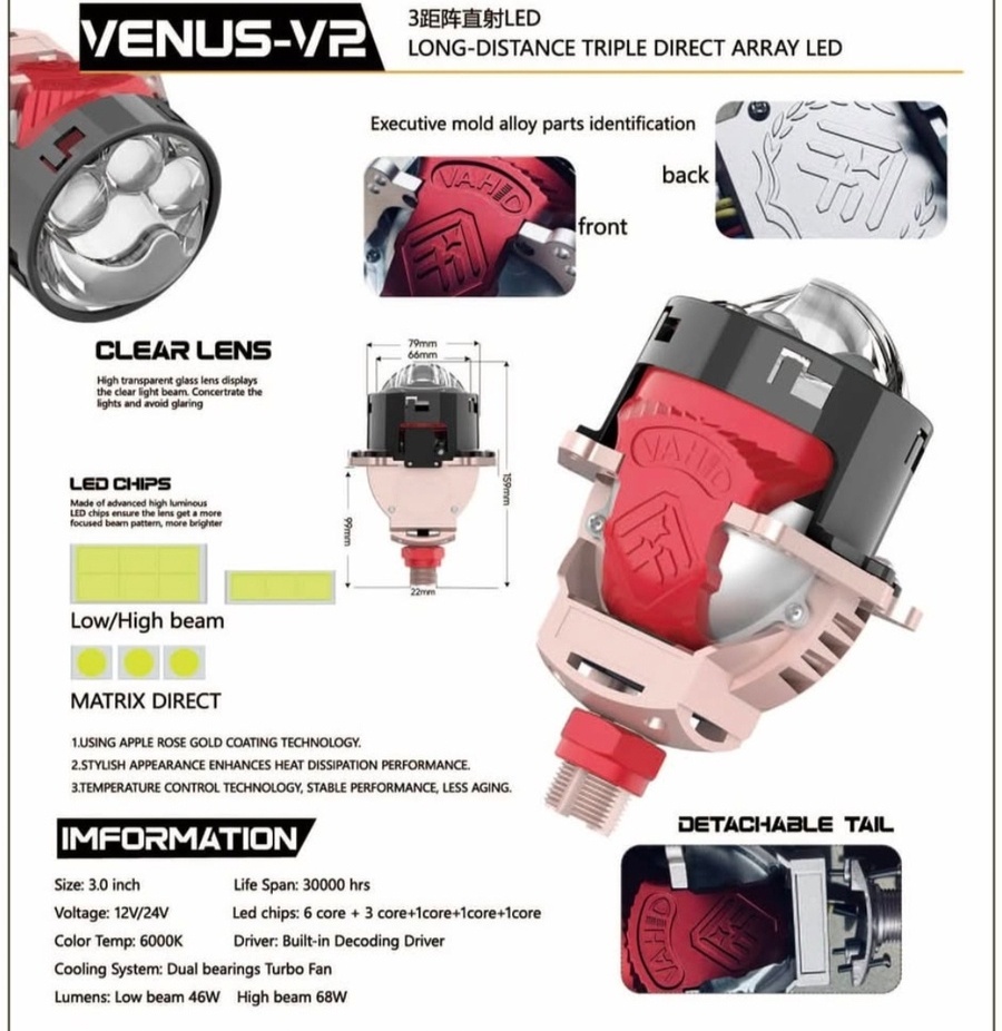 VAHID V2 3.0 Inches Bi-LED Projector for Headlight Retrofit and Upgrade, 3 Laser lenses, VAHID Brand.