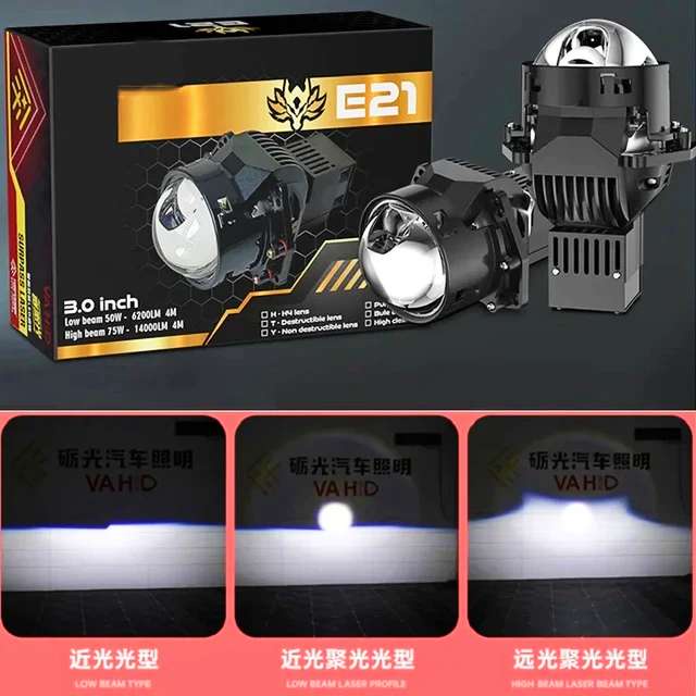 Vahid e20 strong lighting for the lantern of your car its main light has two laser lenses for long distances 75watts in the high 50 watts in the watty