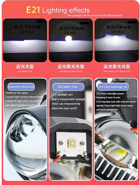 Vahid E21 اضاءه قويه لفانوس عربيتك نورها الاساسي بها عدستان ليزر للمسافات البعيده 75وات في العالي 50 وات في الواطي