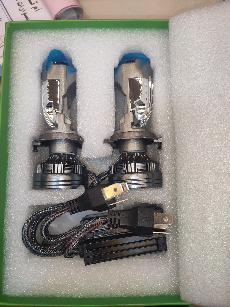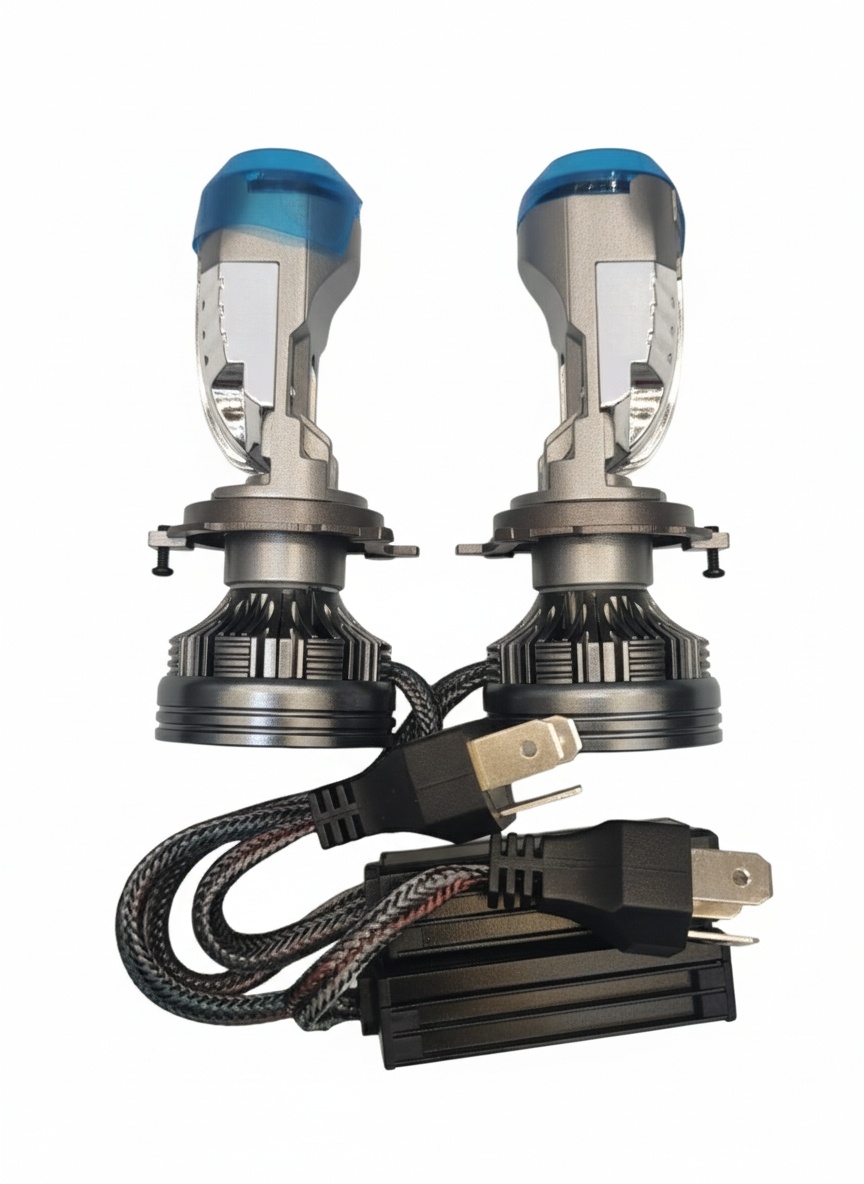 المواصفةالتفاصيلنوع اللمبةH4 LED (Hi/Lo Beam)القوة50 واط لكل لمبة (100 واط للطقم)السطوع5000–10000 لومندرجة الحرارة6000K أبيض باردالعمر الافتراضي≥ 30,000 ساعةالجهد9–32 فولت (سيارات + دراجات)المقاومةIP67/IP68 – مقاوم للماء 100%التوافقمعظم السيارات والدراجات النارية