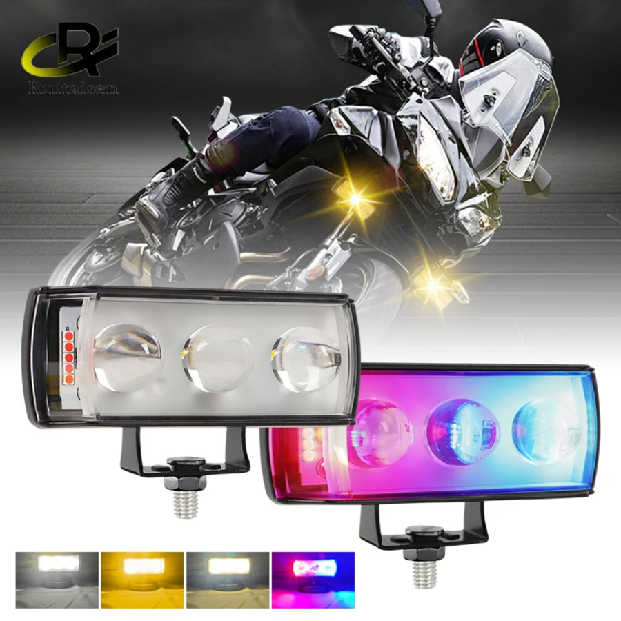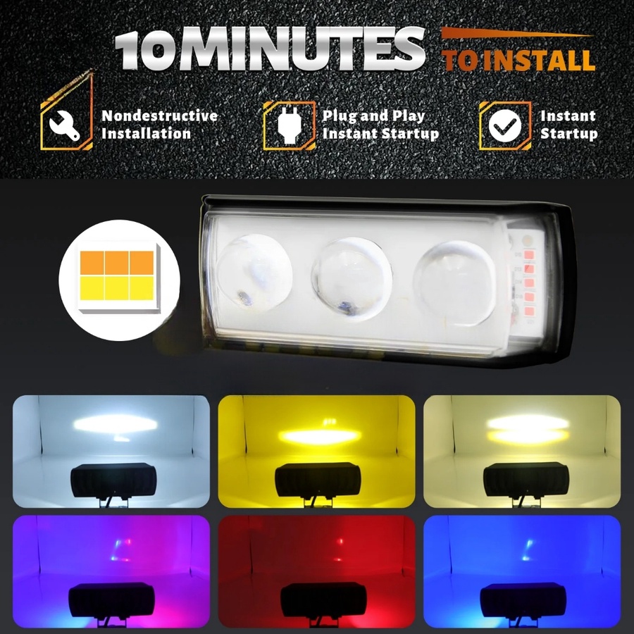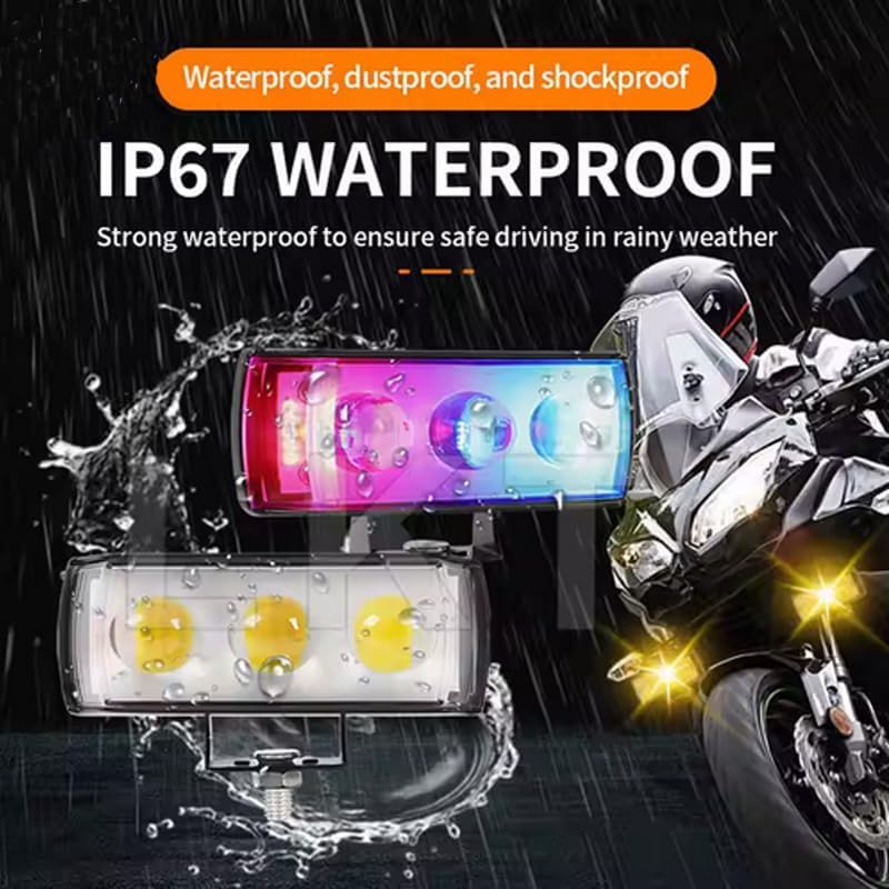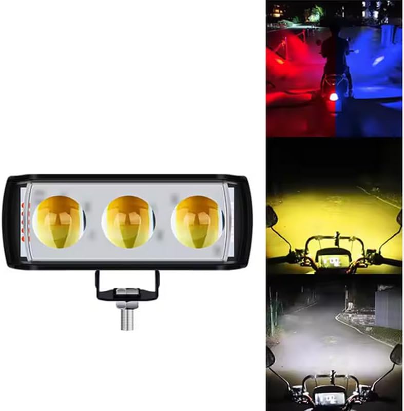 ✅كشاف فانوس شبورة ليد تصميم بومه لون اسود 3 عدسة ،اضاءة عالية السطوع ابيض واصفر ثابت ورعاش وليد جانبي احمر وازرق ، سلك طرفين، مناسب للسيارات والدراجات والموتوسيكلات والاسكوتر والشاحنات وسيارات الطرق الوعرة والسيارات الجبلية